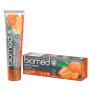 BIOMED® CITRUS FRESH — pielęgnacja naturalna pasta do zębów zapewniająca pełną higienę. Naturalne olejki eteryczne z grejpfruta, mandarynki i cytryny wraz z bisabololem zapewniają świeży oddech i pielęgnują dziąsła. Polydon® (PVP), składnik błonotwórczy, pokrywa zęby warstwą ochronną skutecznie przyczyniając się do długotrwałego oczyszczania, zapewnia wysokie właściwości oczyszczające. Naturalny enzym bromelaina, pochodzący z ekstraktu z ananasa, oraz zaokrąglone cząsteczki polerujące krzemionki pomagają usunąć powierzchniowe przebarwienia i płytkę nazębną, delikatnie wybielając zęby. Glicerofosforan wapnia pomaga wzmocnić szkliwo zębów i wspomaga jego remineralizację, L-arginina chroni przed próchnicą. Ekstrakty z jałowca, babki lancetowatej i liści brzozy działają łagodząco na dziąsła. Mleczan mentylu zapewnia uczucie świeżości w połączeniu z solami cynku i olejkiem eterycznym z mięty pieprzowej. Ekstrakt ze stewii (naturalna substancja słodząca) dba o miękkie tkanki jamy ustnej i wspomaga zdrowie dziąseł. Polecana dla całej rodziny: dzieci od 6. roku życia i dorosłych.